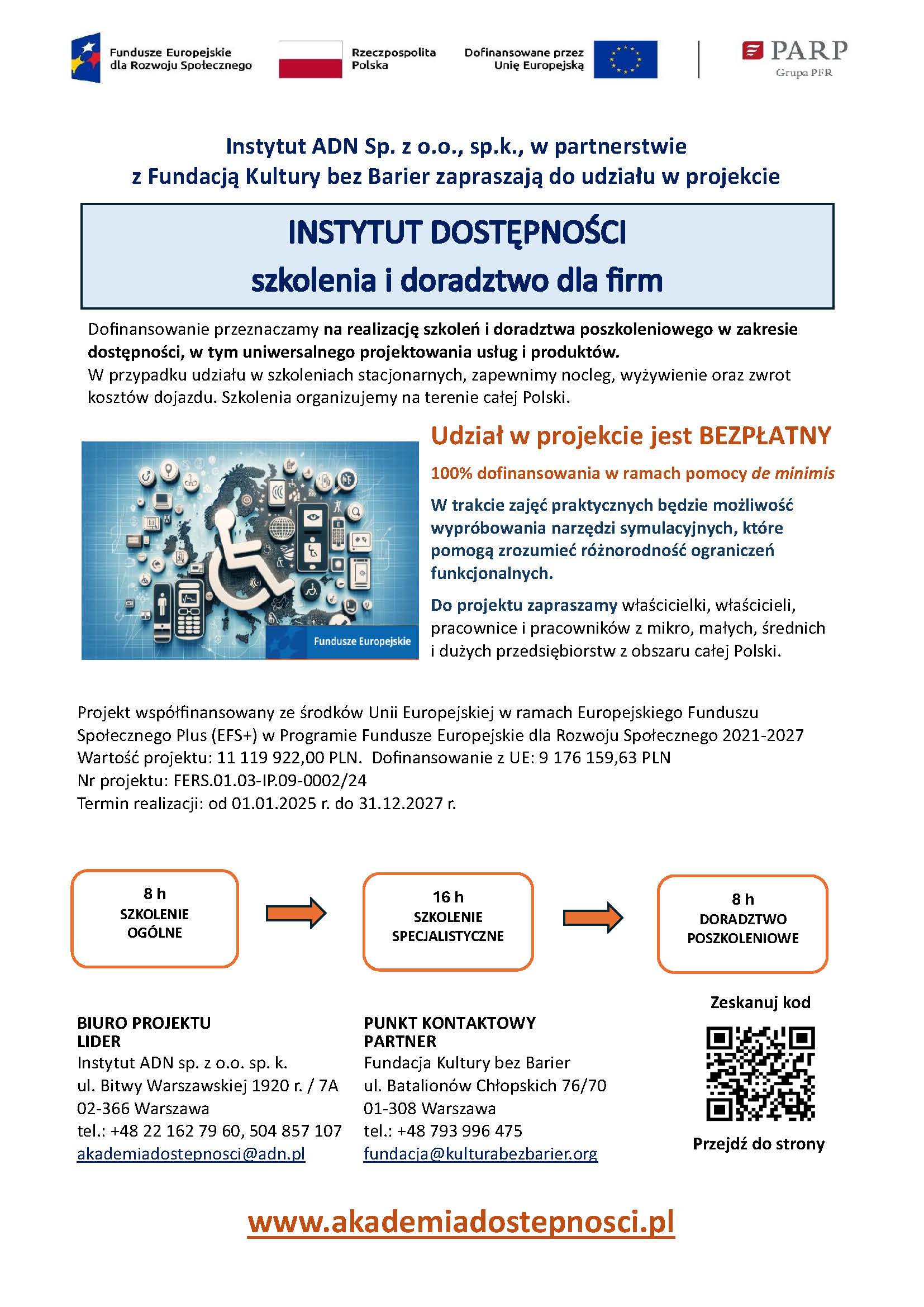 Instytut Dostępności proponuje BEZPŁATNE szkolenia i doradztwo
